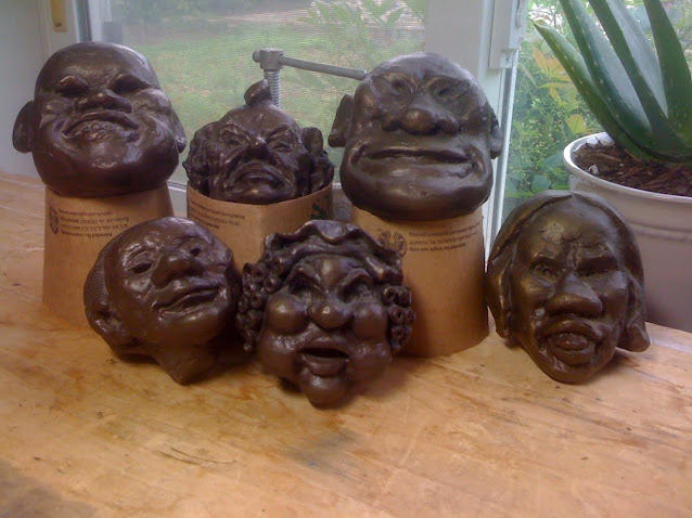 Small heads, bronze. It is unfortunate but this medium is too expensive to work in without an assured buyer, at least for us. He is a huge Honoré Daumier fan.